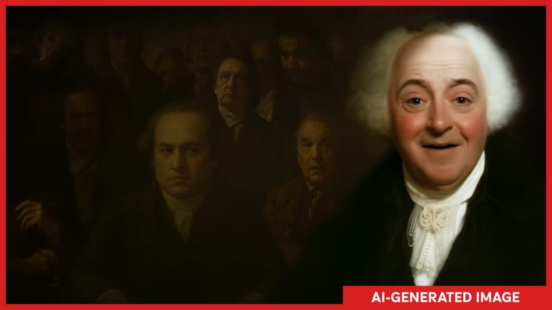 Here is an example. The AI videos can blur the line between reality and fiction. In one video, an artificially generated John Adams says, "Facts do not care about your feelings” a phrase often used by conservative commentator and PragerU presenter Ben Shapiro. There is no evidence that Adams said this.